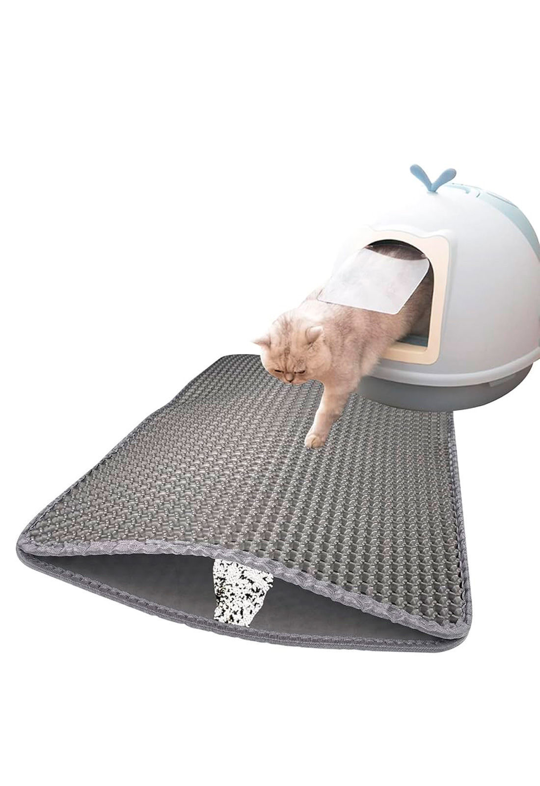 Diseño doble capa: La capa superior de nuestra alfombra cuenta con un ingenioso diseño de panal que permite que la arena de las patas de tu gato se filtre y se aloje en la capa interior de la alfombra. Con nuestra alfombra sanitaria, la arena se mantiene contenida y no se dispersa, asegurando una limpieza total y eliminando cualquier rastro no deseado.
