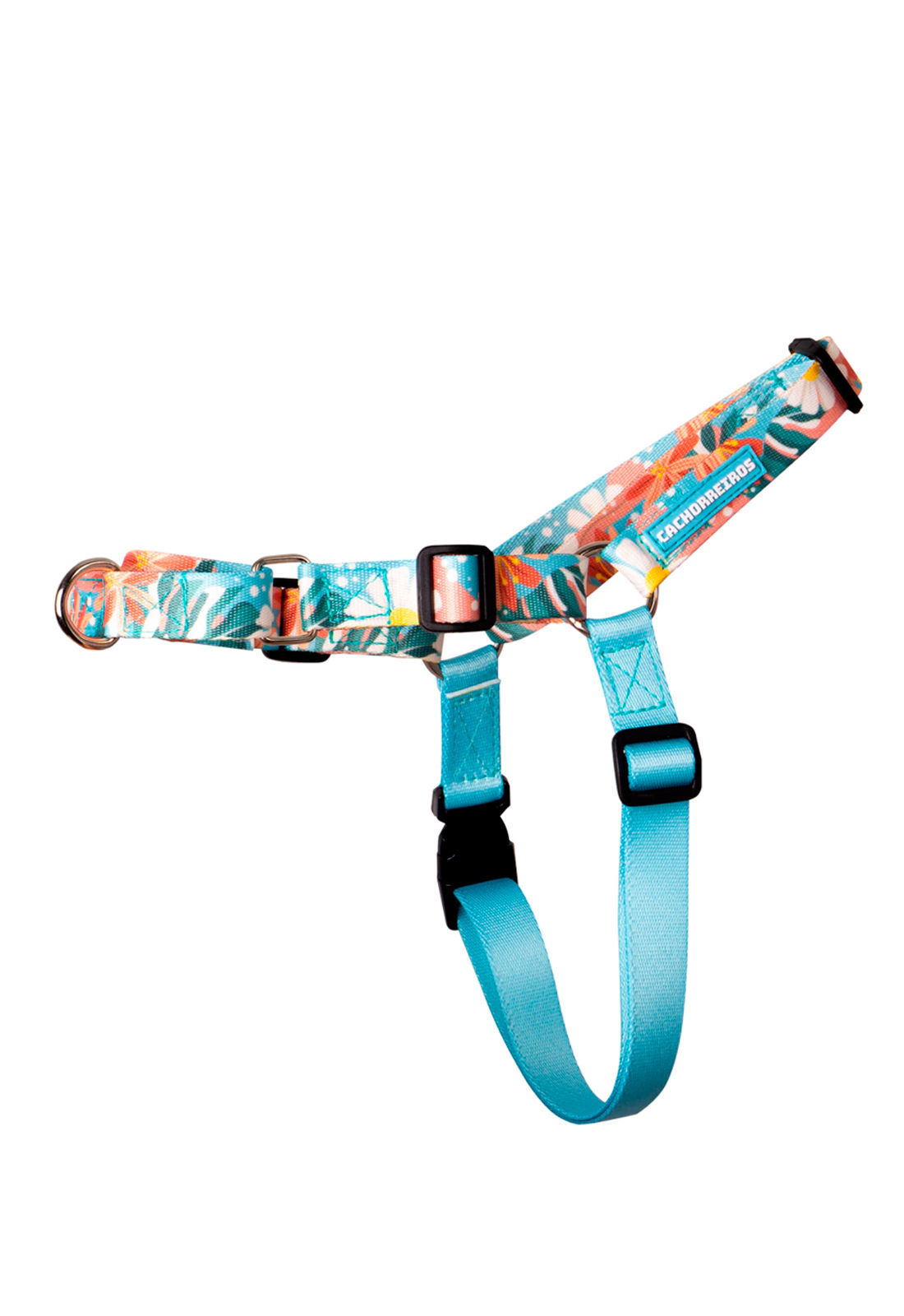 Confeccionado en poliéster resistente y liviano, este arnés se destaca por su exclusivo estampado floral, ideal para quienes buscan funcionalidad con un toque de estilo.