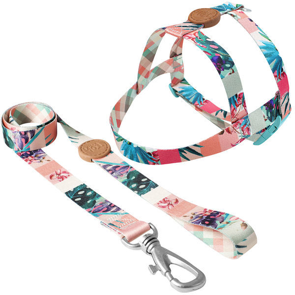 Fabricado con materiales de alta calidad, el conjunto de arnés y correa tradicional ofrece comodidad, resistencia, seguridad y durabilidad. También está disponible en estampados exclusivos y encantadores para complementar el estilo de tu mascota durante los paseos.