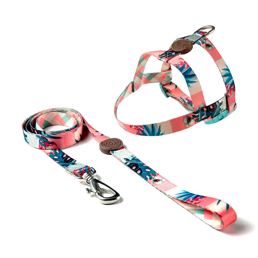 Fabricado con materiales de alta calidad, el conjunto de arnés y correa tradicional ofrece comodidad, resistencia, seguridad y durabilidad. También está disponible en estampados exclusivos y encantadores para complementar el estilo de tu mascota durante los paseos.