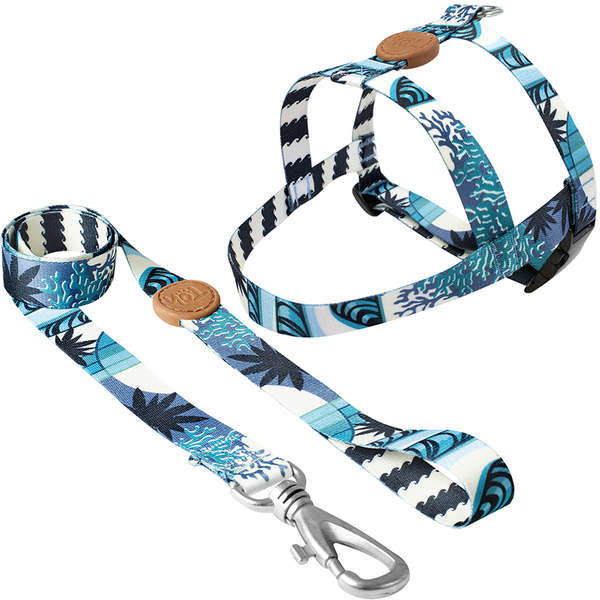 Fabricado con materiales de alta calidad, el conjunto de arnés y correa tradicional ofrece comodidad, resistencia, seguridad y durabilidad. También está disponible en estampados exclusivos y encantadores para complementar el estilo de tu mascota durante los paseos.