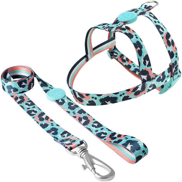 Fabricado con materiales de alta calidad, el conjunto de arnés y correa tradicional ofrece comodidad, resistencia, seguridad y durabilidad. También está disponible en estampados exclusivos y encantadores para complementar el estilo de tu mascota durante los paseos.