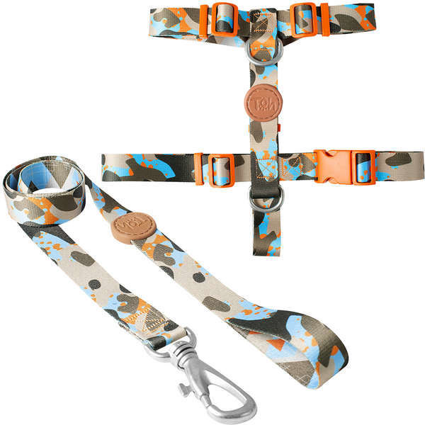 Fabricado con materiales de alta calidad, el conjunto de arnés y correa H garantiza comodidad, resistencia, seguridad y durabilidad. Además, cuenta con estampados exclusivos y encantadores para que los paseos de tu mascota sean aún más especiales.