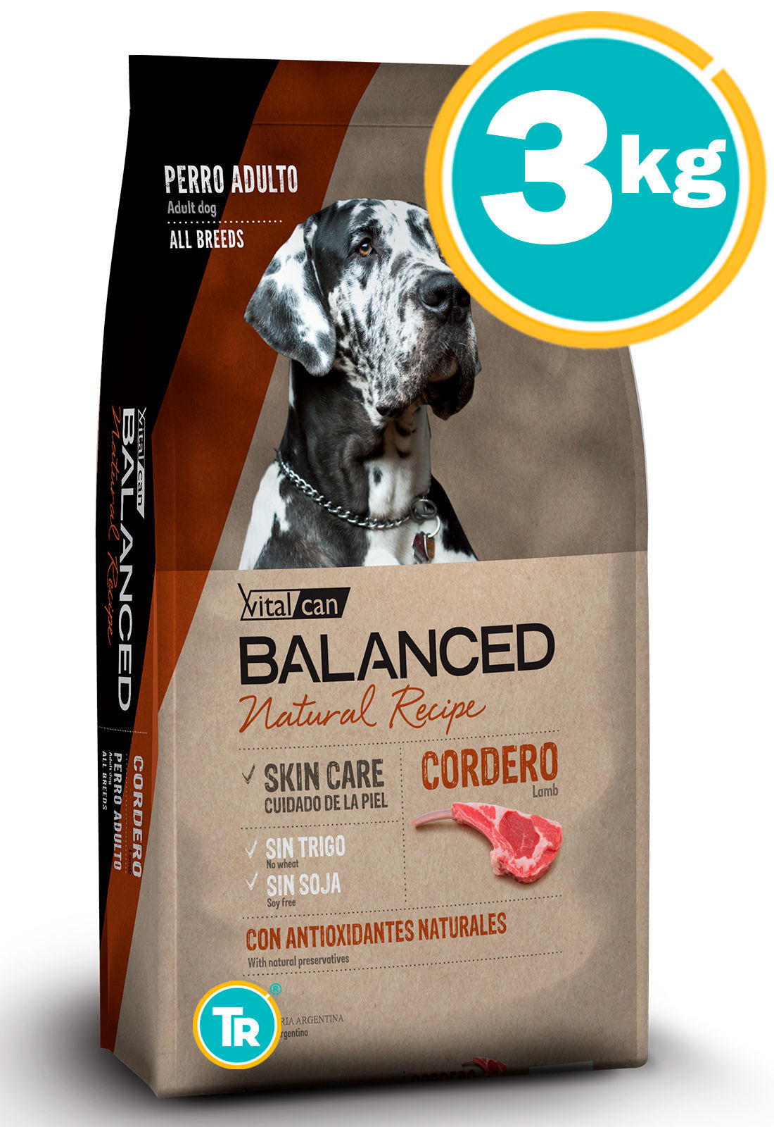 Harina de carne y hueso de cordero, arroz, arvejas, gluten meal, aceite de pollo, pulpa de remolacha, hidrolizado de vísceras de pollo, aceite de pescado, levadura de cerveza, zeolita, sal, inulina, extracto de Yucca schidigera, polifenoles, ácido propiónico, paredes de levadura, antioxidantes naturales (extracto de romero, lecitina, tocoferoles), glucosamina, metilsufonilmetano, nucleótidos de levadura, hexametafosfato de sodio. Vitaminas: A, D3, E, K3, B1, B2, B6, B12, colina, biotina, ácido fólico, ácido nicotínico, ácido pantoténico, vitamina C. Minerales: yodo, hierro, manganeso, cobre, selenio y zinc.