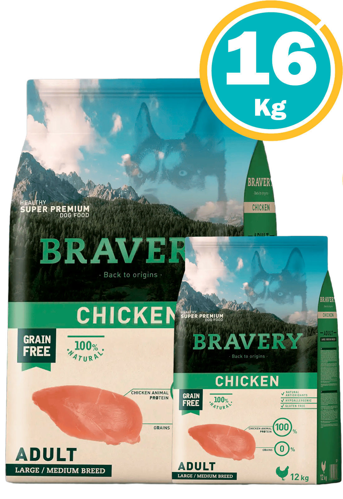 Carne de pollo deshidratada, tapioca, grasa de ave (Fuente de ac. grasos Ω-6), guisantes, levadura y extracto de levadura-Saccharomyces cerevisiae (Fuente de mananooligosacáridos – MOS y β-glucanos), aceite de pescado (Fuente de ac. grasos Ω-3-EPA y DHA), boniato, vaina de algarroba, pulpa de remolacha, proteína hidrolizada de pollo, huevo entero deshidratado, hígado hidrolizado de pollo, proteína de patata, Inulina (Fibra soluble de achicoria, fuente fosfooligosacáridos – FOS), celulosa natural (Fuente de fibra insoluble), minerales, fibra dietética soluble extraída de Plantago ovata, aceites esenciales (orégano, canela, clavo, tomillo, romero, hierbabuena, té verde), hidrolizado de crustáceos (Fuente de glucosamina), hidrolizado de cartílago (Fuente de condroitina), yuca, concentrado de zumo de melón liofilizado (Rico en superoxido dismutasa – SOD).