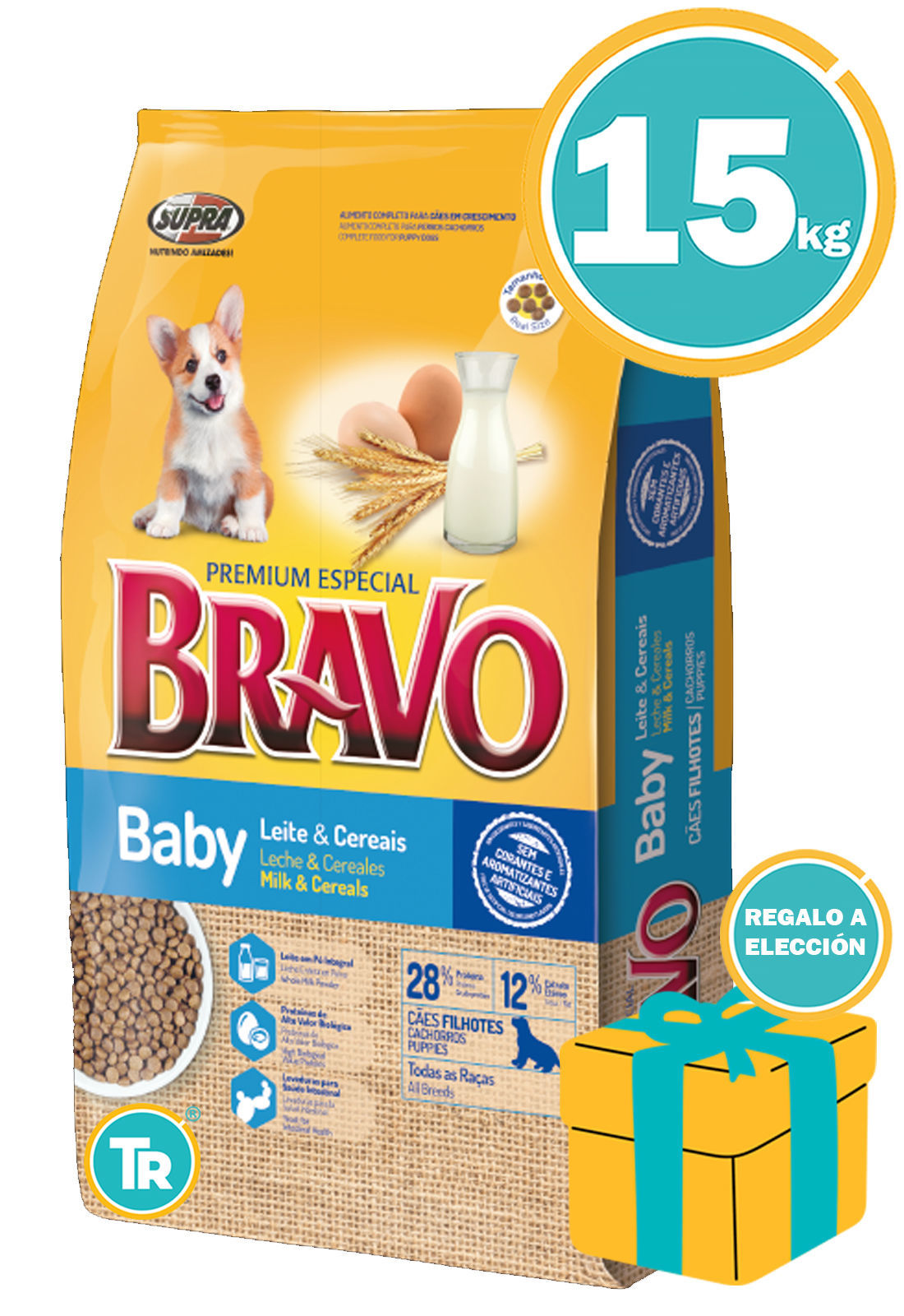 Bravo Baby es un alimento desarrollado para perros cachorros de todas las razas. Sus elevados niveles de proteína y energía garantizan un desarrollo saludable. Fibra a base de Pulpa de remolacha, es ideal para estimular la actividad intestinal en esta fase.