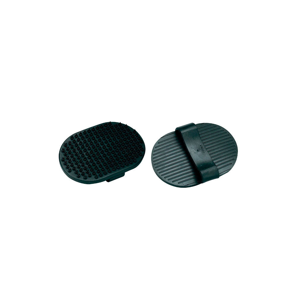 Peine de goma de forma ovalada con una tira para pasar la mano y facilitar el uso. Sirve para pelajes cortos. La forma especial de este peine hace fácil su uso hasta para pelos gruesos. Sus tres filas de dientes permiten quitar el pelo muerto. Este guante es excelente para lavar y quitar los pelos cortos sin herir a tu mascota. Dimensiones: 13,3 x 9,2 cm