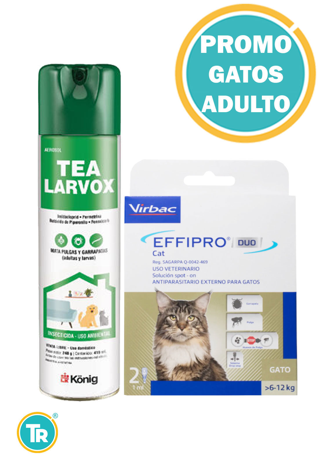 Tea Larvox. Pulguicida y garrapaticida ambiental en aerosol con acción ovicida, larvicida y adulticida. Control de pulgas y garrapatas en el medio ambiente en todos sus estadios de desarrollo.