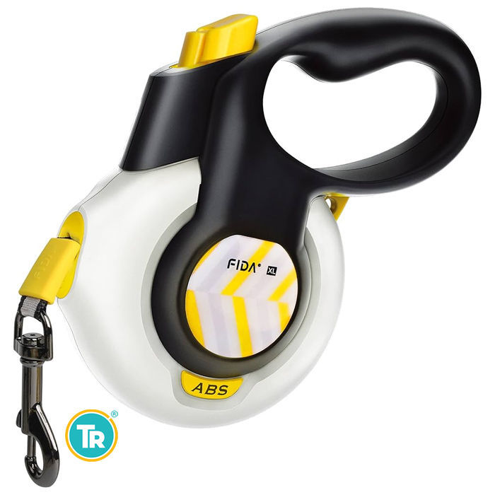 Correa extensible, retráctil y resistente para perros Fida de la Serie Mars color blanco. Con agarre ergonómico antideslizante, entrada antitorsión, gancho giratorio resistente al óxido y sistema de freno con una sola mano.