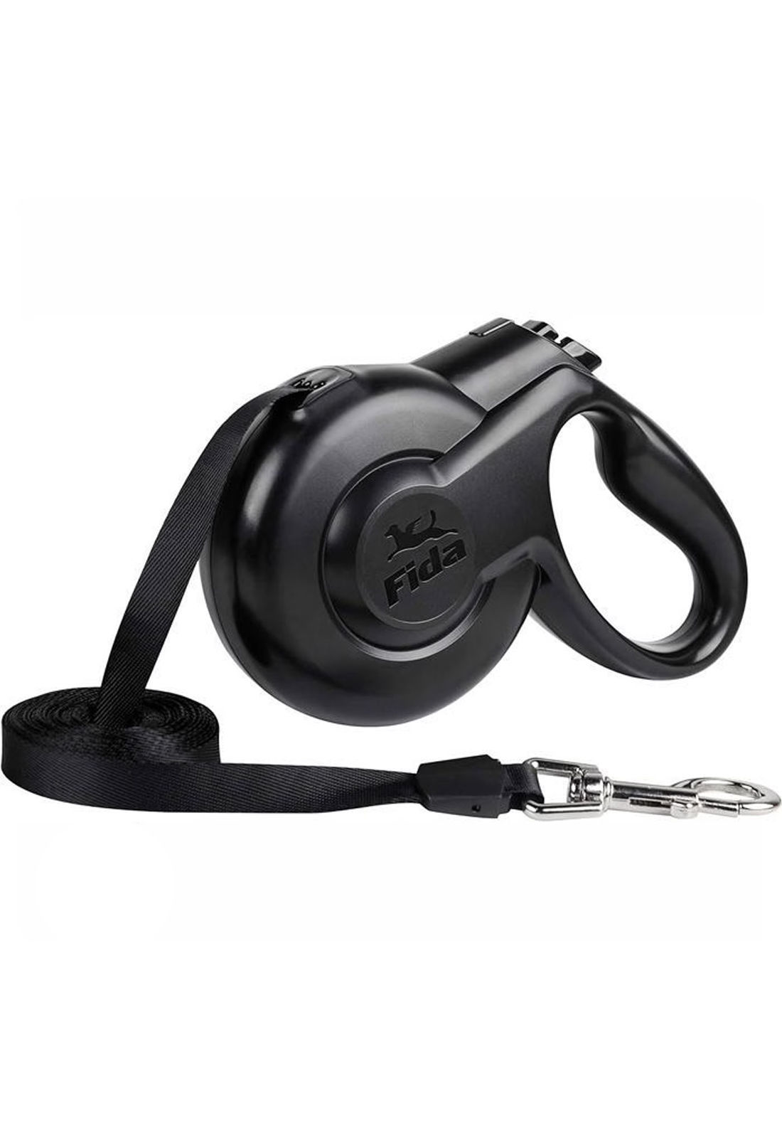 Correa extensible para perros Fida de la Serie Styleash color negro. Con mango ergonómico y cómodo, sistema de frenado rápido y duradero, entrada antigiro y gancho giratorio resistente al óxido.