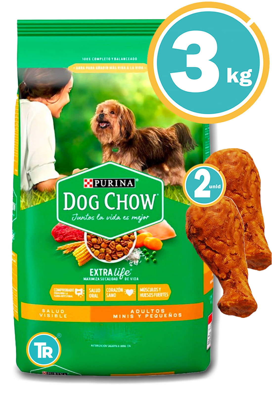 TU RACIÓN PROMOCIÓN DISPONIBLE DOG CHOW Adulto Raza Pequeña 3kg + 2 Patas de pollo de lonja digeribles (Sku 357)