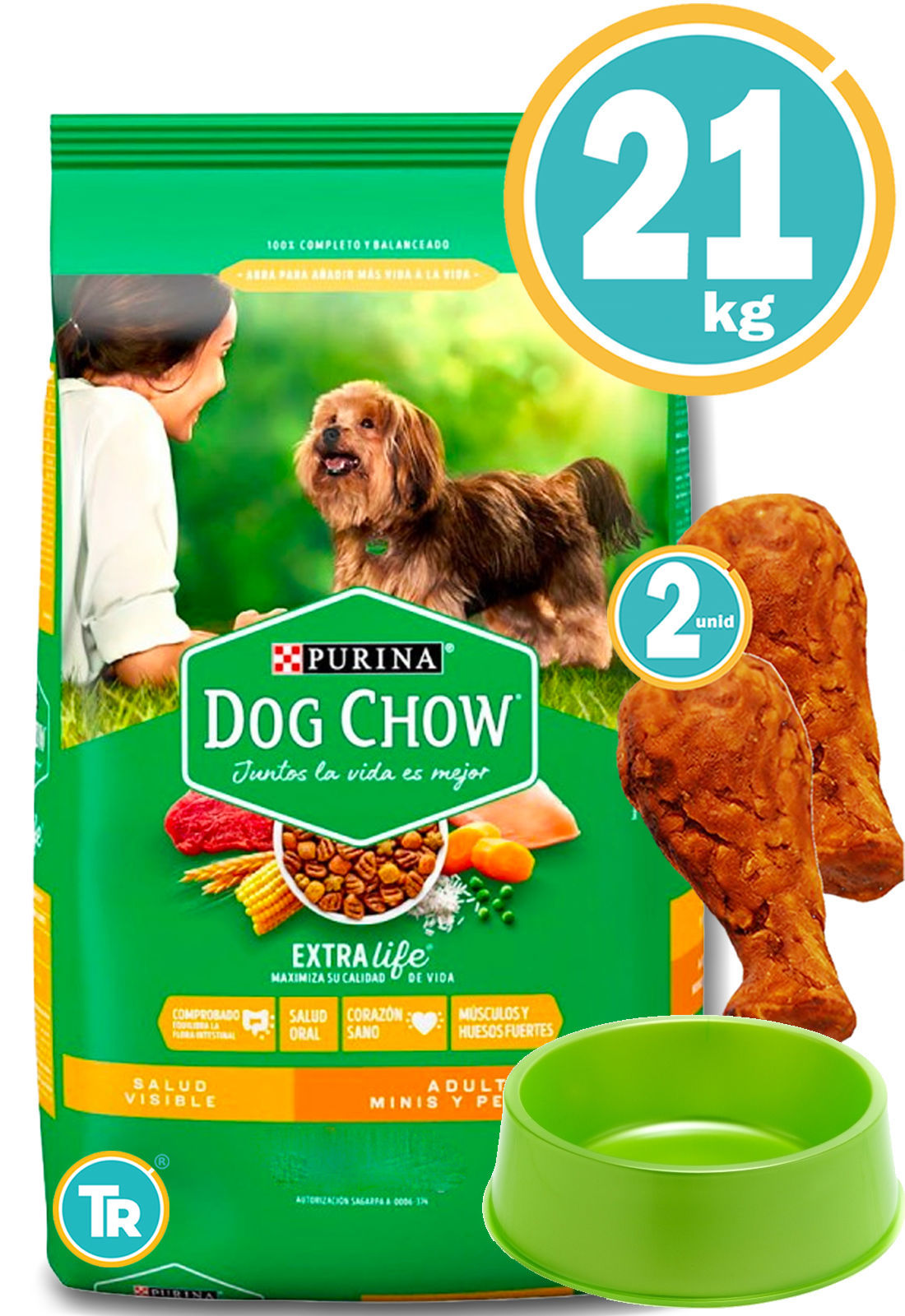 TU RACIÓN PROMOCIÓN DISPONIBLE DOG CHOW Adultos Razas Pequeñas 21 kgs + 2 Patas de pollo de lonja digeribles + Comedero de regalo (Sku 357 + TR047) + Envío Gratis