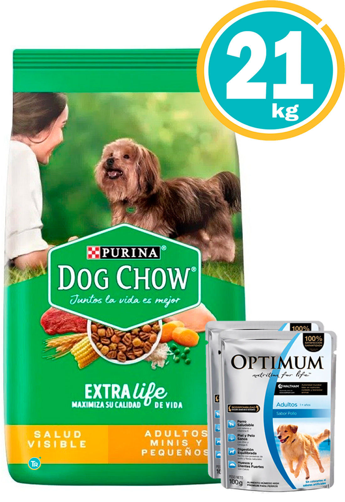 TU RACIÓN PROMOCIÓN DISPONIBLE DOG CHOW Adultos Razas Pequeñas 21 kgs + 2 salsas optimum (6805 x2) + Envío Gratis