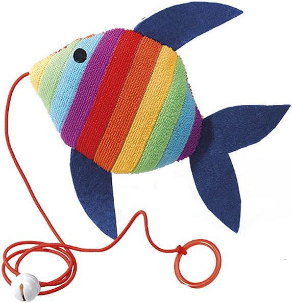 Este juguete para gatos hecho de material suave tiene una forma original con un pequeño cordón y una campana. Es presentado por varios modelos de animales, por ejemplo, un pez colorido o un gato con graciosas huellas en la espalda. Absolutamente seguro, como todos los juguetes de Ferplast.