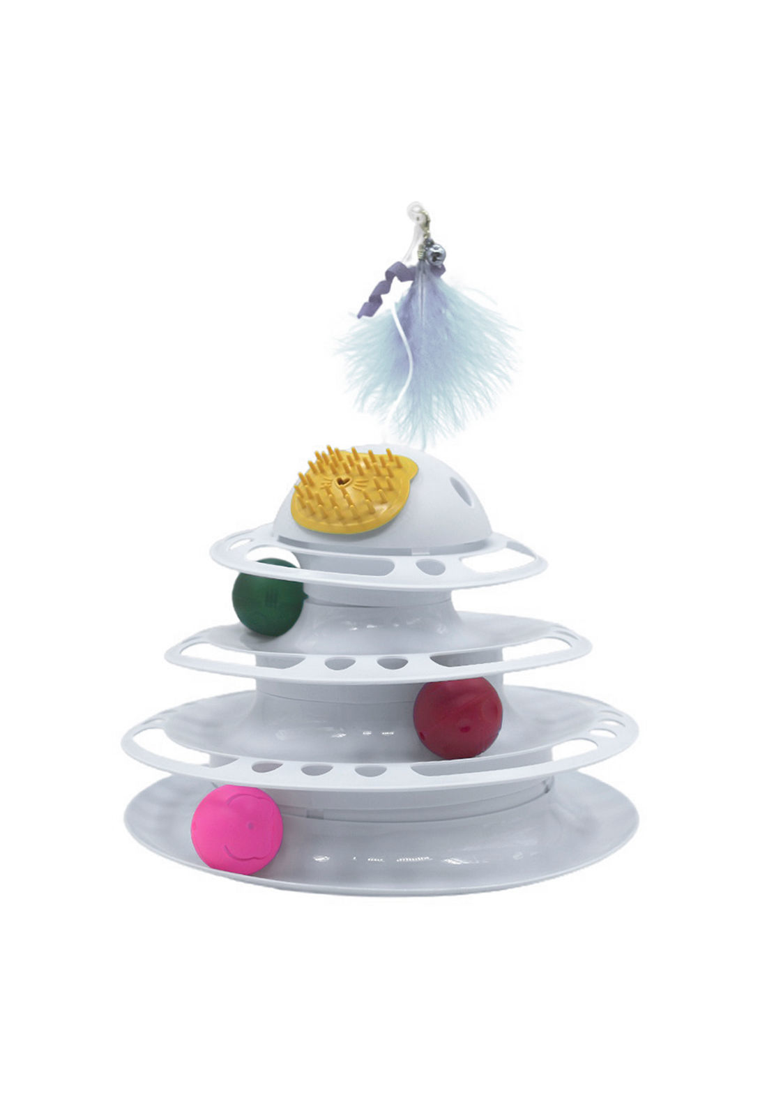 El Juguete para Gato BA-1761 cuenta con un diseño en torre de 4 pisos con 3 niveles de juego interactivo. Está pensado para estimular el instinto cazador del gato y mantenerlo activo y entretenido de forma segura.