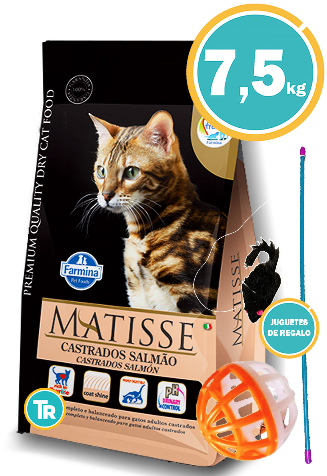 TU RACIÓN PROMOCIÓN DISPONIBLE MATISSE Gato Castrado Salmón 7,5 kg + Pelota cascabel + Juguete varilla con ratón + Envío Gratis