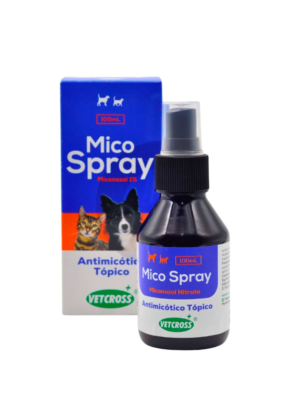 Presentación: Envase x 100 mL c/atomizador El Mico Spray Vetcross® Solución tópica está indicado para el tratamiento en infecciones cutáneas en perros y gatos causados por agentes como ser: Malassezia pachydermatis, Microsporum canis, Microsporum gypseum y trichopytum mentagrophytes, etc. Los imidazoles alteran la permeabilidad de la membrana celular de levaduras y hongos sensibles, bloqueando la síntesis de ergosterol, también se alteran otros sistemas enzimáticos que lleva a la muerte celular.