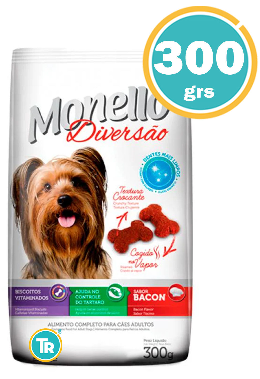 Las galletas crocantes Monello Diversión se desarrollaron especialmente para dejar el día a día de su perro más divertido. Con sabor irresistible de tocino, ellas combaten el tártaro, dejando los dientes de su pet más limpios y saludables. Además de ser irresistibles a los paladares caninos, las galletas Monello Diversión son vitaminados y se pueden usar como snack o como alimento completo. Diviértase con su amigo!