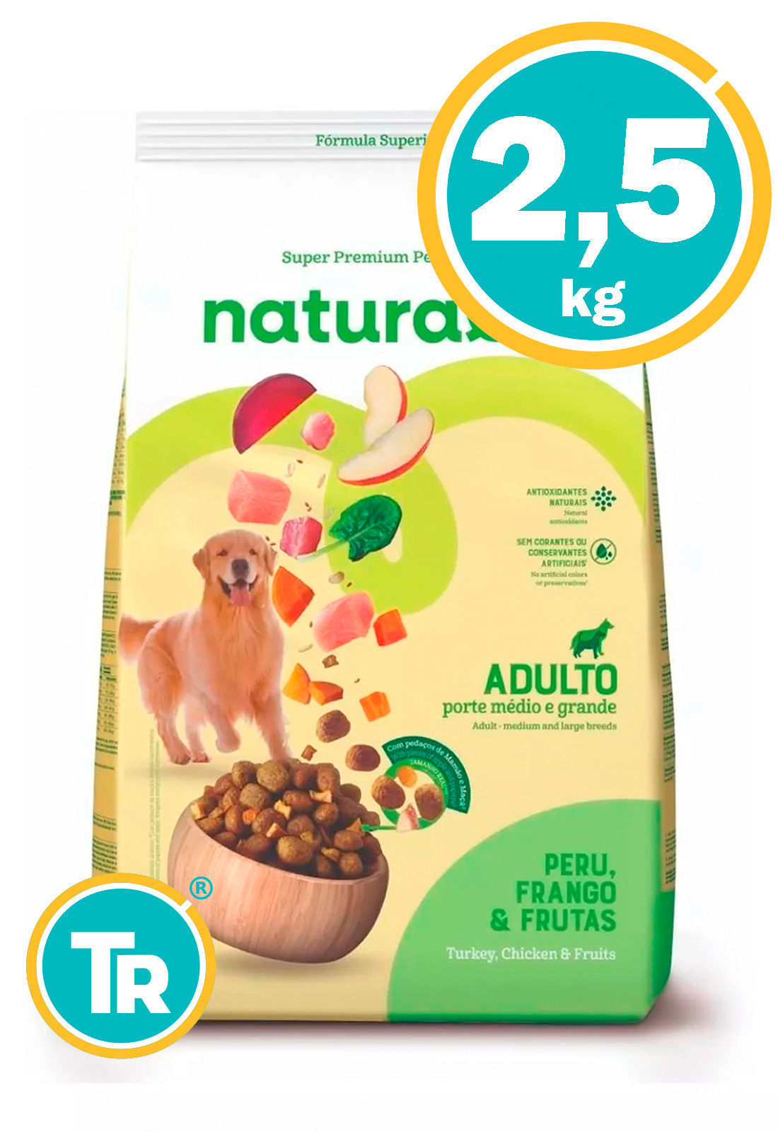 Naturalis Pollo, Pavo y Frutas Adultos es un alimento para perros adultos de mediano a gran porte (a partir de los 18 meses de edad)