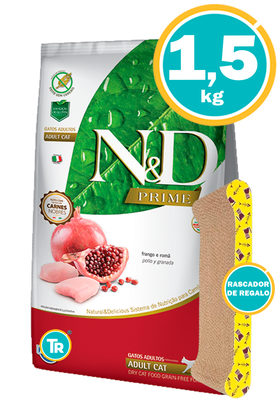 Harina de vísceras de pollo (mín. 20%), huevo deshidratado, harina de pescado, proteína aislada de cerdo, almidón de papa, aceite de pollo, aceite de pescado, pulpa de remolacha, fibra de guisante, alfalfa deshidratada (mín.1%), lignocelulosa, psyllium (mín.0,18%), levadura de cerveza, zanahoria deshidratada, espinaca deshidratada, naranja deshidratada, manzana deshidratada, arándano en polvo, extracto de granada (mín. 0,08%), extracto de té verde (mín. 0,01%), extracto de aloe vera (mín. 0,05%), extracto de cúrcuma (mín. 0,05%), betacaroteno, luteína, fructo-oligosacáridos, manano-oligosacáridos, DL-metionina, taurina, L-carnitina, sulfato de condroitina, sulfato de glucosamina, extracto de yucca, zeolita, hidrolizado de hígado de pollo y/o cerdo, vitaminas (A, D3, E, K3, B1, B2, B6, B12, C, biotina, niacina, ácido pantoténico, ácido fólico, cloruro de colina), cloruro de potasio, fierro orgánico, cobre orgánico, zinc orgánico, manganeso orgánico, selenio orgánico, yodato de calcio, propionato de calcio, antioxidante natural (concentrado de tocoferoles).