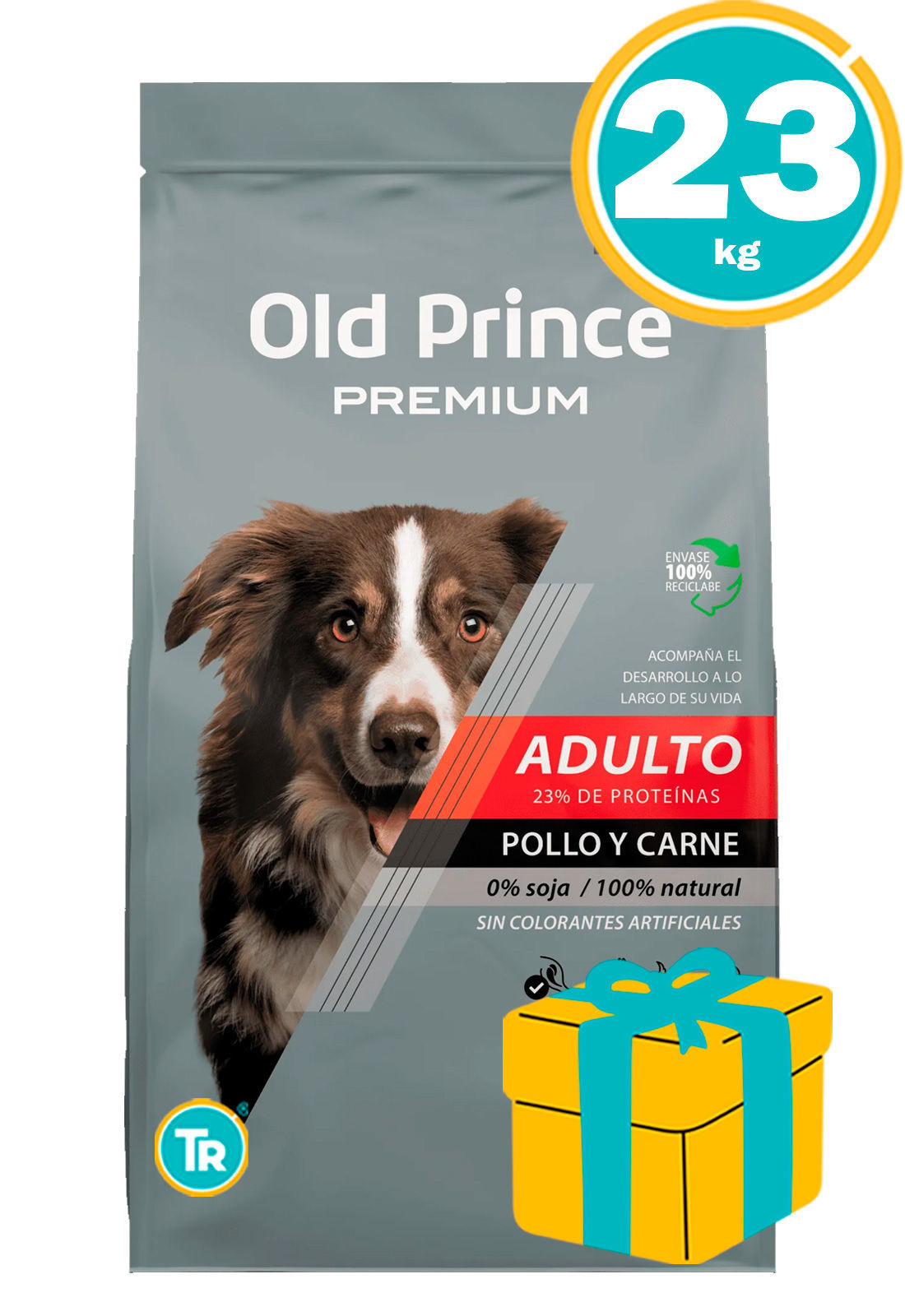 Old Prince Premium Adulto Pollo continentemente Harina de pollo, harina de carne, arroz, maíz, trigo, gluten de maíz, germen de maíz desgrasado, aceite de pollo, aceite de pescado (fuente de omega 3), hidrolizado proteico de menudencias bovinas, pulpa de remolacha (fuente de fructo-oligosacáridos – FOS), fuente de fibra insoluble (celulosa),