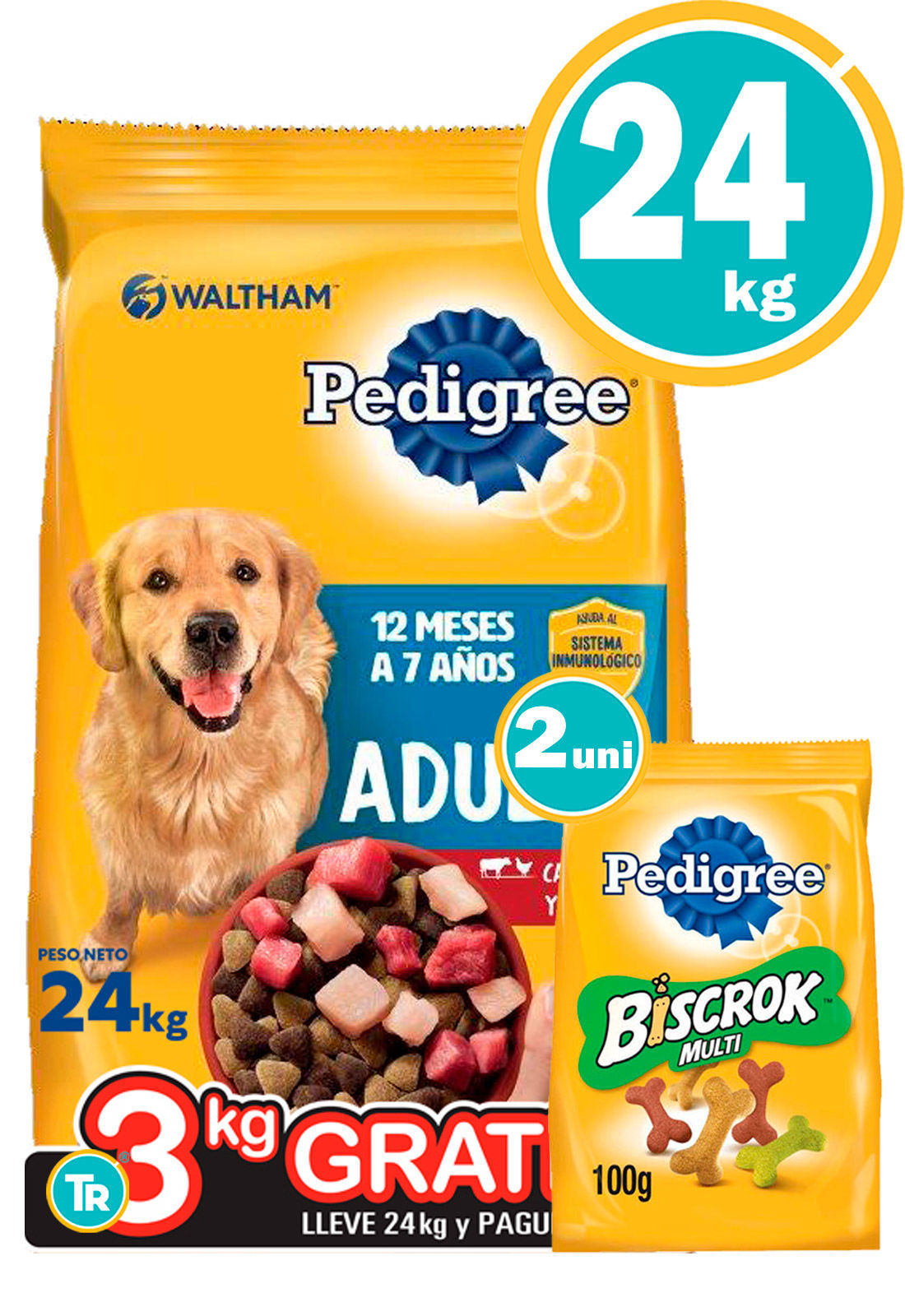 TU RACIÓN PROMOCIÓN DISPONIBLE PEDIGREE Perro Adulto Carne, Pollo y Cereales 21+ 3 Kg + Biscrok (2501x2)