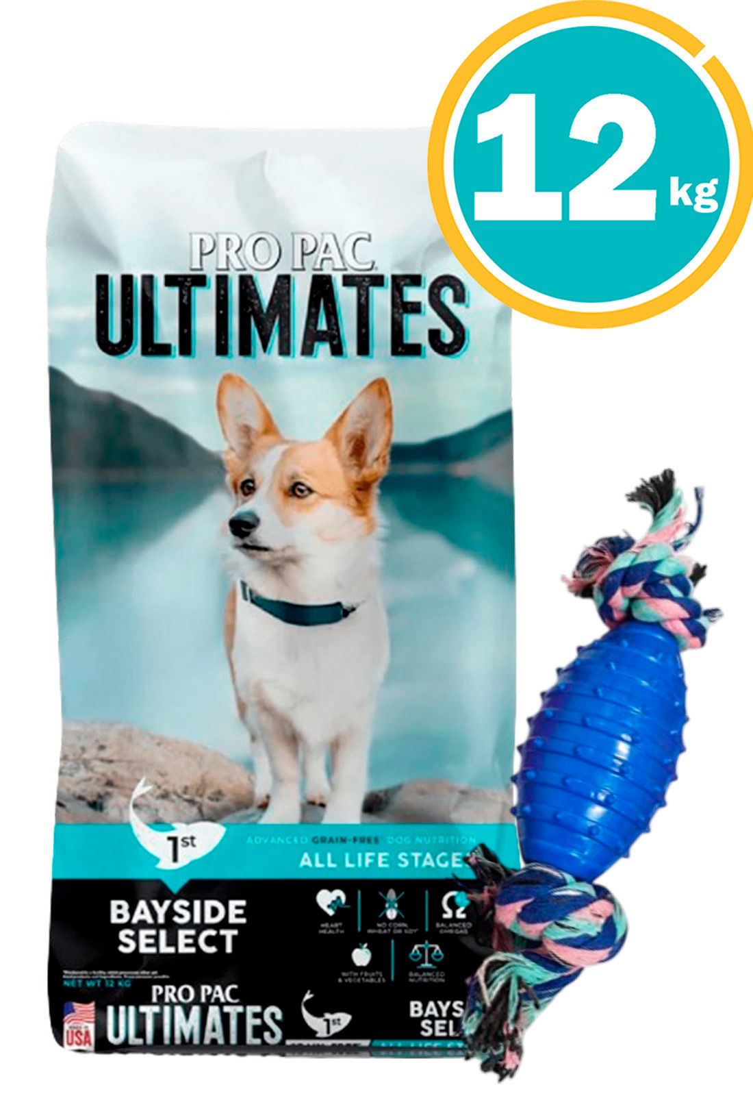 Bayside Select es un nuevo enfoque de la nutrición superpremium sin granos. Formulado con ingredientes simples y nutritivos de pescado blanco (>20 %), patatas (20 %) y frutas y verduras (>12 %), Ultimates: Bayside Select proporciona una nutrición completa y una dieta equilibrada sin el uso de cereales, colorantes artificiales, sabores o conservantes. El color varía naturalmente. Ultimates: Bayside Select cumple con los niveles nutricionales establecidos por los perfiles de nutrientes de alimentos para perros de la Asociación Estadounidense de Funcionarios de Control de Alimentos (AAFCO) para todas las etapas de la vida.