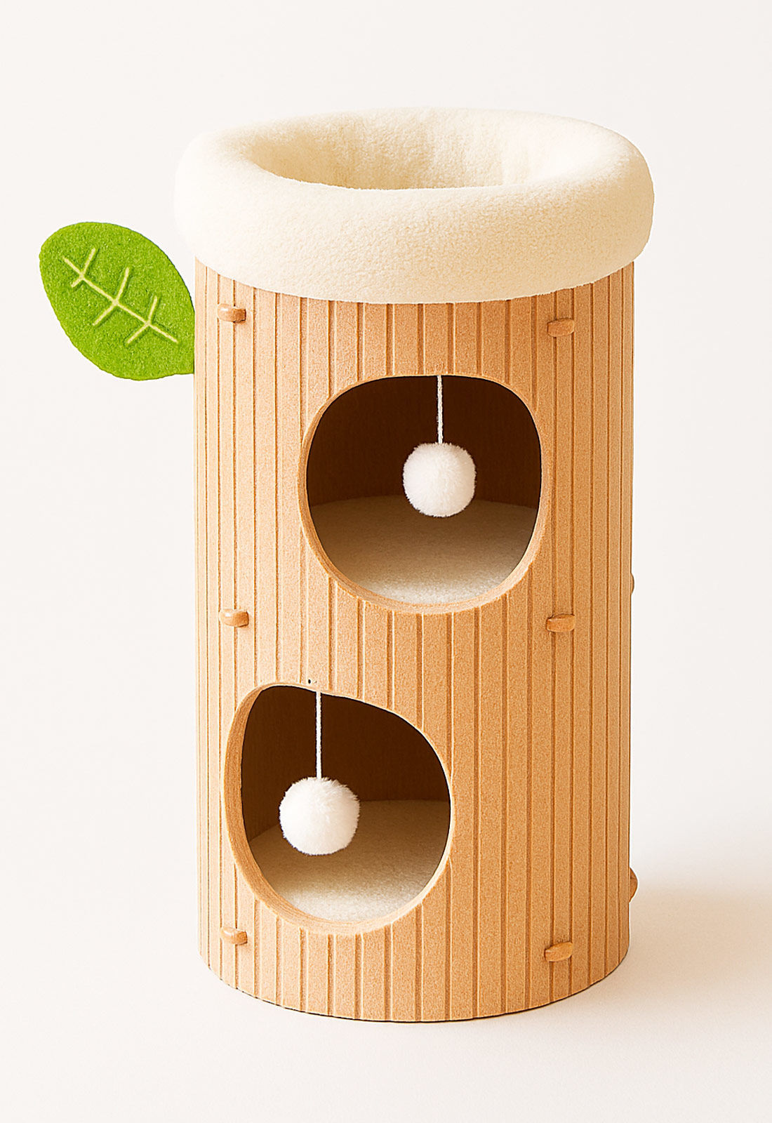 Diseño cálido y natural en color camel, con dos niveles de descanso y juego. Incluye suaves almohadones para mayor confort y pelotas colgantes que estimulan el juego. Ideal para ofrecer a tu gato un espacio cómodo, seguro y entretenido dentro del hogar.