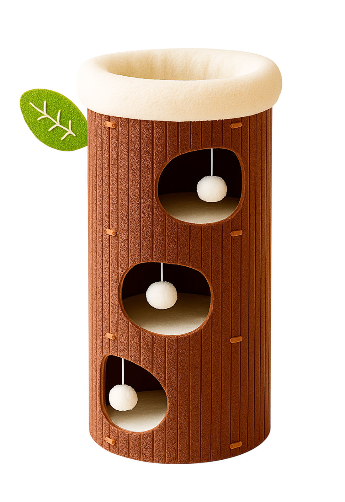 Diseño cálido y natural en color marrón, con tres niveles de descanso y juego. Incluye suaves almohadones para mayor confort y pelotas colgantes que estimulan el juego. Ideal para ofrecer a tu gato un espacio cómodo, seguro y entretenido dentro del hogar.