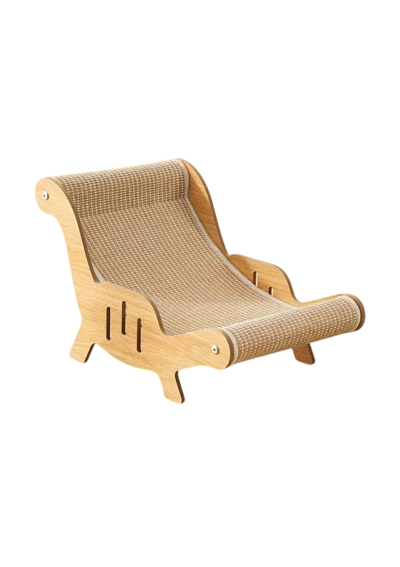 Rascador en forma de sillón curvo.