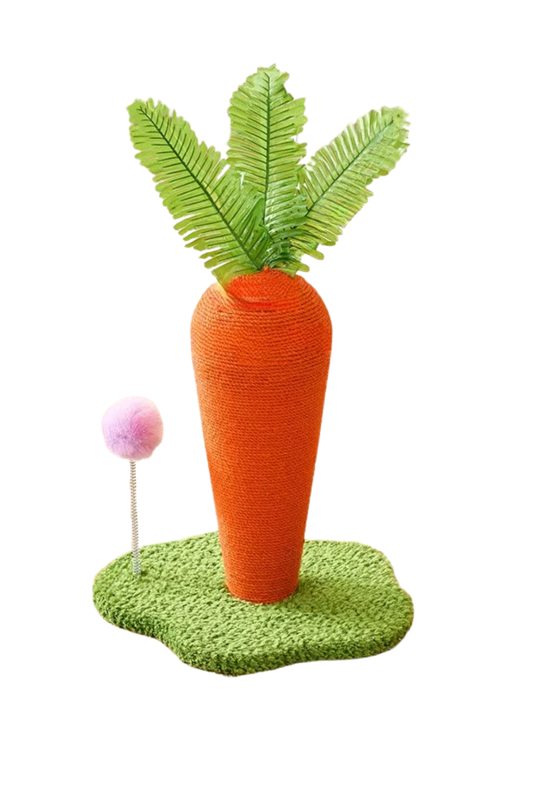Original rascador con diseño en forma de zanahoria, ideal para estimular el juego y el descanso de tu gato. Su estructura vertical permite trepar, rascar y relajarse, convirtiéndose en un espacio completo de entretenimiento.