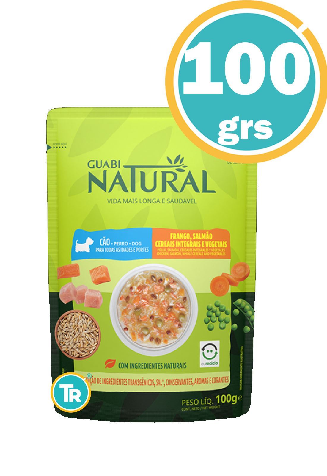 SALSA GUABI NATURAL para perros, tiene dos presentaciones de sabor: Pollo, cereales integrales, y vegetales o Pollo con salmón, cereales integrales y vegetales.