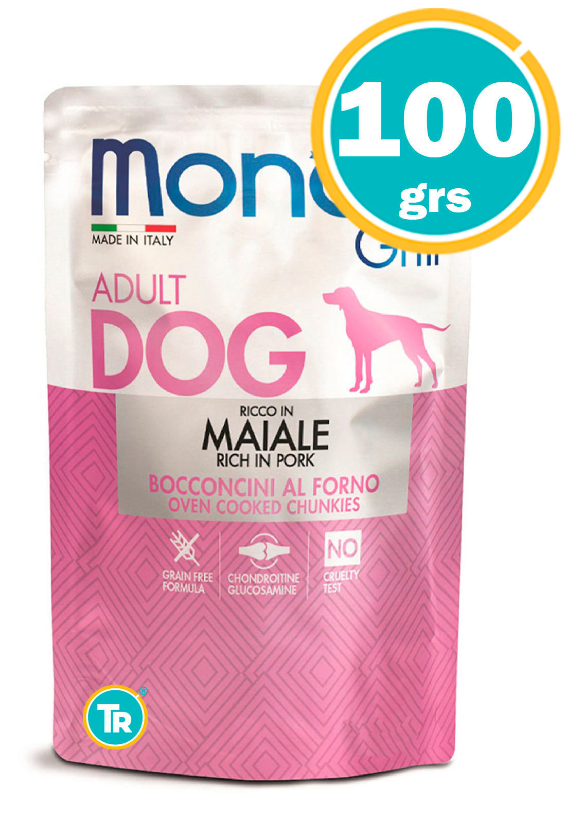 Alimento completo para ADULTOS con CARNE DE CERDO cocida al horno. SIN CEREALES. Con Glucosamina y Condrotina para apoyo a las articulaciones. || COMPOSICIÓN: Carne y derivados 40% (cerdo 14%, pollo 15%, pavo 11%), sales minerales, glucosamina 0,008%, sulfato de condroitina 0,004%.