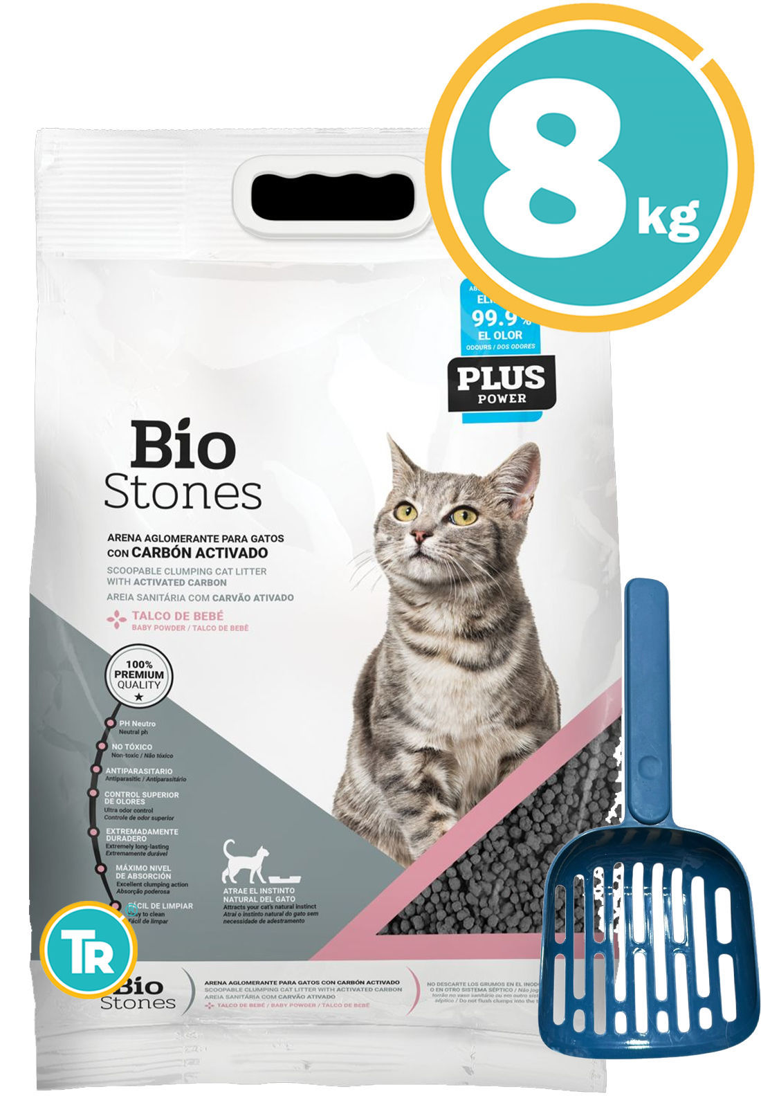 TU RACIÓN PROMOCIÓN DISPONIBLE SANITARIO BENTONITA ARENA BIO STONES CARBON ACTIVADO VARIOS AROMAS 8 KG + Pala Sanitaria