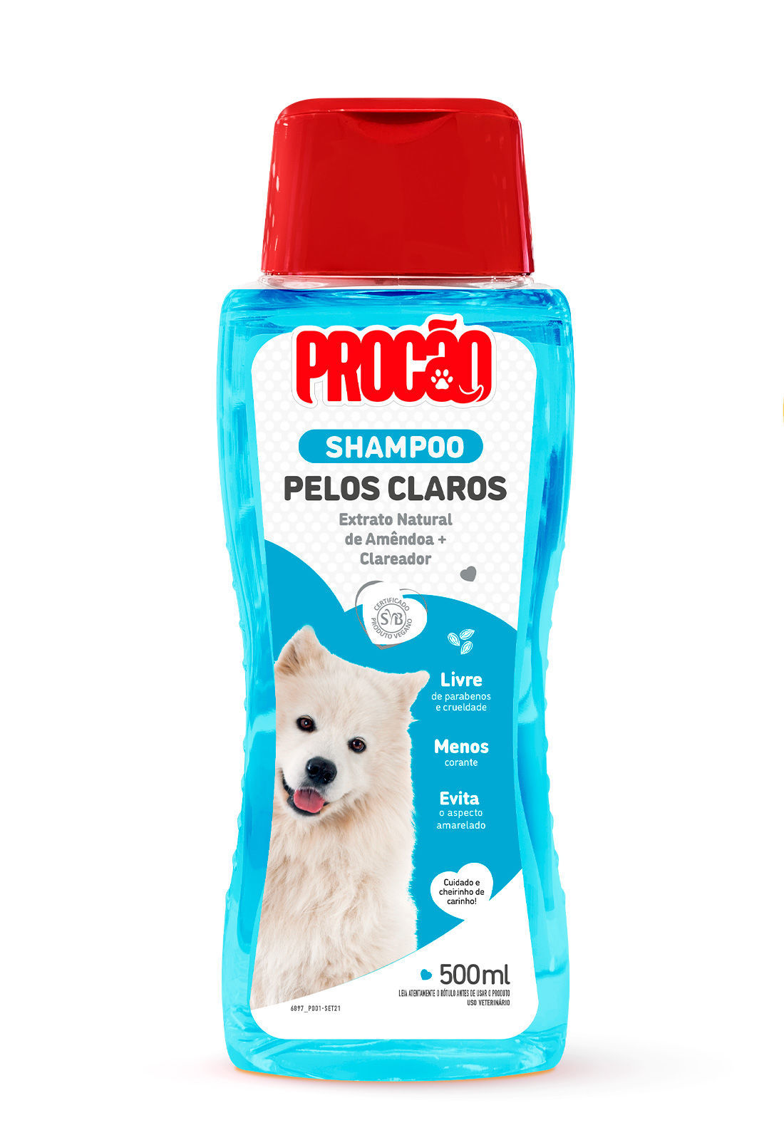 - Aplique suficiente Shampoo Procão para Pelo Claro hasta formar espuma y extiéndalo por todo el cuerpo.