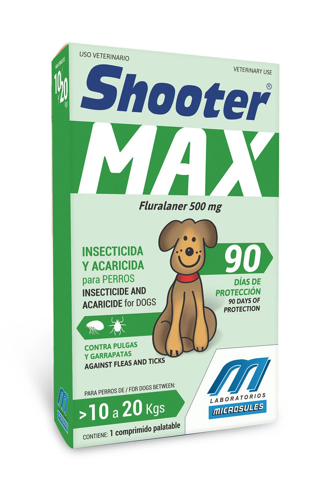 Un comprimido palatable con 500 mg de Fluralaner para perros con pesos mayores de 10 kg a 20 kg de peso.