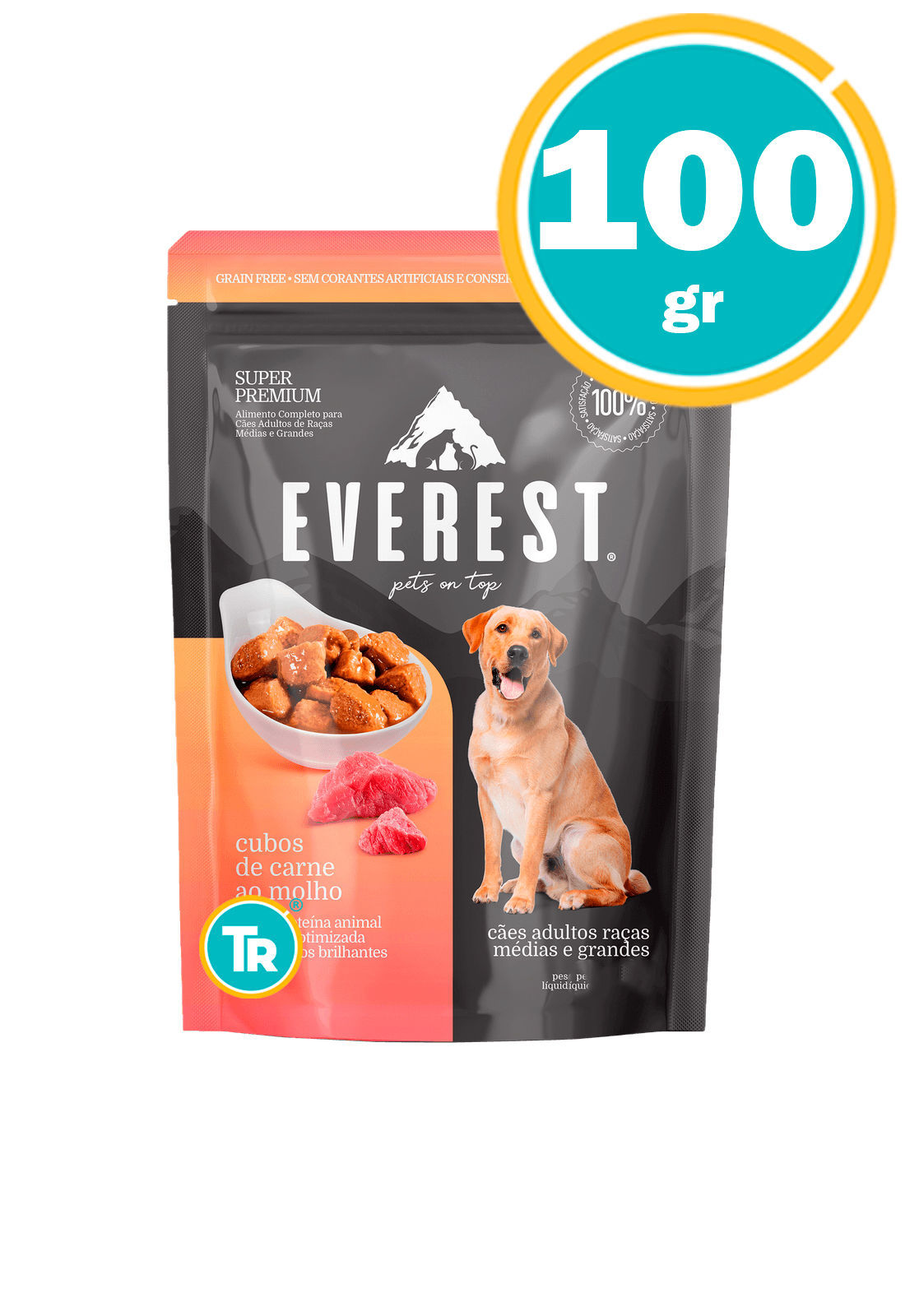 Everest alimento húmedo cubos de carne en salsa para perros adultos de razas medianas y grandes 100g Es un alimento húmedo, equilibrado y completo, recomendado para perros medianos y grandes. Proporciona una digestión optimizada y una piel y pelaje brillantes para su mascota. Contiene 100% proteína animal y un delicioso sabor a carne en salsa. La comida es súper premium, sin cereales, colorantes artificiales ni OGM, para una dieta más saludable para tu pequeño amigo. Digestión optimizada; 100% proteína animal; Piel y pelaje brillantes; Alimento equilibrado y completo; Adecuado para perros adultos medianos y grandes; Sin cereales, sin colorantes artificiales ni OGM. Cantidad diaria recomendada: sobre de 100g. Tamaño medio (6 a 10 kg): 7 a 10 sobres. Artículos grandes de más de 11 kg: 10 o más sobres. Envase de 245g. Tamaño medio (6 a 10 kg): 3 a 4 envases. Tamaños grandes superiores a 11 kg: 4 o más macetas. Composición: Carne de res separada mecánicamente (9%), carne de pollo separada mecánicamente, hígado de ave, hígado de cerdo, harina de subproductos de pollo, plasma de cerdo en polvo, grasa animal estabilizada, aceite vegetal, aceite de pescado, harina de trigo, celulosa, pulpa de remolacha, agua, color caramelo natural, almidón modificado, goma xantana, saborizante de hígado de ave, vitaminas (a, d3, e, c, k, b1, b2, b6, b12, ácido pantoténico, ácido fólico, niacina, biotina y cloruro de colina), minerales (cloruro de sodio, carbonato de calcio, cloruro de potasio, óxido de zinc, sulfato ferroso, sulfato de cobre, sulfato de manganeso, yodato de calcio y selenito de sodio).