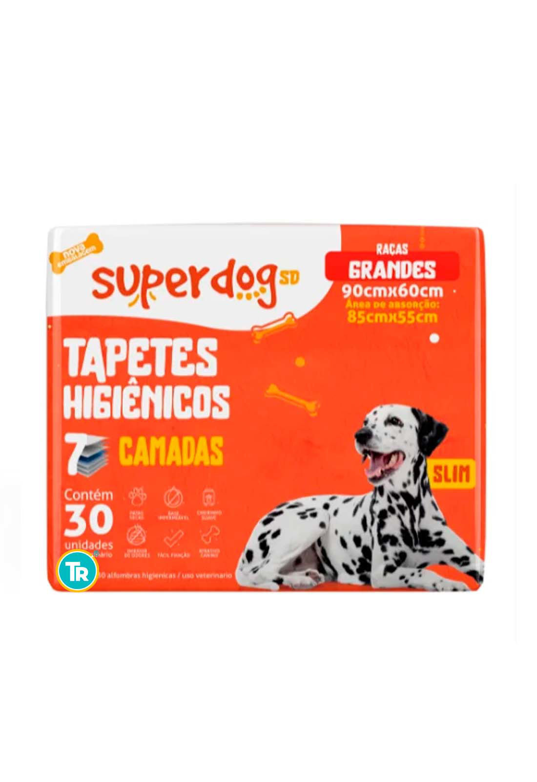 SUPER DOG Tapetes Higiénicas para Perros Tamaño: 90 x 60 cm. - permitiendo una mayor área de absorción. Indicación: TODAS LAS RAZAS DE PERROS: machos y hembras, adultos y cachorros. Contiene: 1 - GEL SUPER ABSORBENTE.2 - INHIBIDOR DE OLORES.3 - CINTA ADHESIVA PARA FIJACIÓN.4 - FONDO IMPERMEABLE.5 - ATRACCIÓN DE PERROS